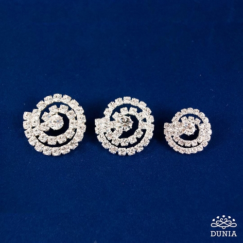 Botón de fantasía en forma de espiral. Está realizado con cristales Swarovski engarzados sobre plateado. En el centro presenta un cristal de mayor tamaño. Se presenta en tres tamaños: grande (3 cm de diámetro), mediano (2.5 cm de diámetro) y pequeño (1.8 cm de diámetro).