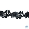 Precioso encaje guipur negro con flores y hojas caladas. Su ancho es de 10cm. Es un guipur de alta calidad. Por su calado resalta el color de los tejidos sobre los que se pone. Las flores se pueden separar y colocarlas independientemente.