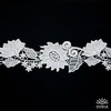 Encaje de guipur con una guirnalda de girasoles y hojas caladas. Su ancho es de 7 cm.