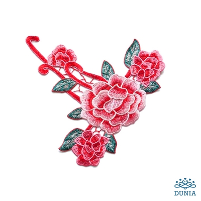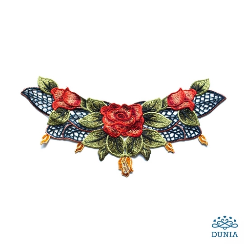 Precioso cuello con tres rosas bordadas sobre un enrejado bordado. Tiene un tamaño de 30 x 12 cm.