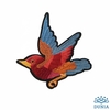 Aplicación termoadhesiva bordada en tonos rojos, azules y amarillo. Mide 12 x 12 cm.