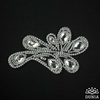 Aplicación termoadhesiva plata de cristales Swarovski y strass. Su tamaño es 14 x 8 cm.