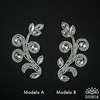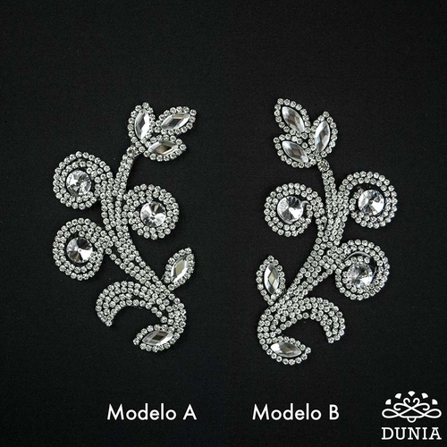 Aplicación termoadhesiva plata de cristales Swarovski y strass. Su tamaño es 7 x 13 cm.