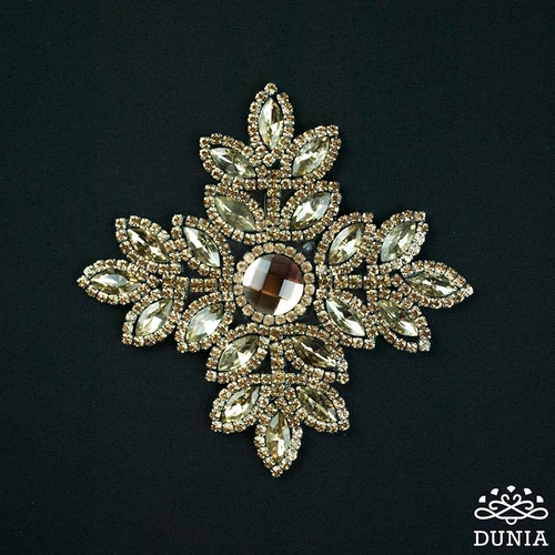Aplicación termoadhesiva plata de cristales Swarovski y strass. Su tamaño es 11 x 11 cm.