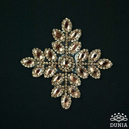 Aplicación termoadhesiva dorada de cristales strass. Mide 8 x 8 cm.