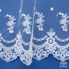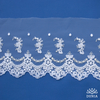 Punta ancha de encaje de tul bordado en blanco y blanco hueso. Ancho 14 cm.