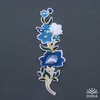 Aplique bordado termoadhesivo en azules, blanco, verde y dorado. Mide 23cm x 8cm.