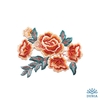 Aplicación bordada de flores en distintas tonalidades de naranja y hojas verdes. Sus dimensiones son 18 x 15 cm.
