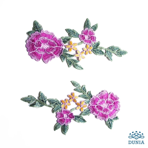 Aplicación de claveles bordados. Sus dimensiones son 19 x 14 cm.