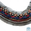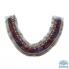 Aplicación en forma de cuello. Está hecho de tul bordado con abalorio y cristales Swarovski. Su tamaño es de 26 cm de ancho y 28 cm de largo.