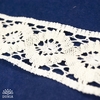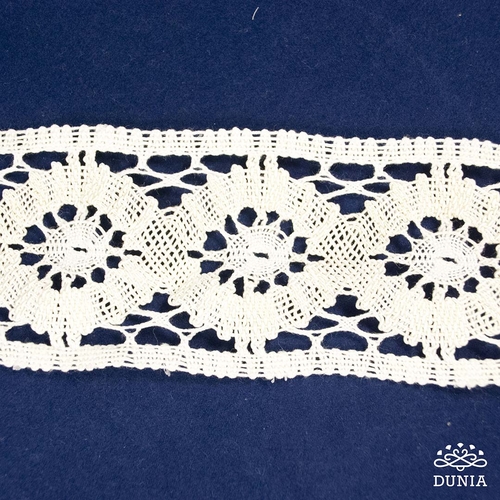 Extraordinario entredós de encaje de bolillos de alta calidad en dos tonos de color blanco hueso. Su anchura es de 6 cm. Es compañero a la punta con referencia 00157.