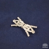 Broche Swarovski de elegante diseño y gran calidad. Combina brillantes de talla baguette y talla diamante engarzados con gran originalidad. Broche con estructura y cierre de enganche plateados. Sus dimensiones son de 5 cm x 2,5 cm.