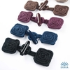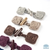 Alamar para prendas de invierno hecho con cordón lanoso y botón de trenca. Mide 12 cm de largo y 3,5 cm de ancho.