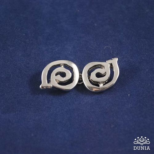 Broche con diseño en forma de caracola calada en plateado. Tiene cierre de enganche. Sus dimensiones son de 3,5 x 1,5.